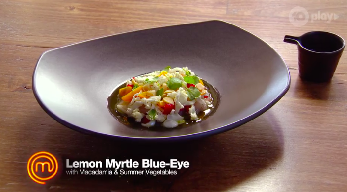 When Ben comes back over, Billie tells him to pick one of the covered dishes. He gets the lemon myrtle.