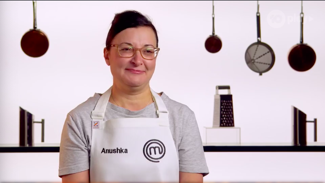George comes over to Anushka towards the end of the cook and says, “Are you just going to stare at the oven? Anushka? Are you just staring at the oven? Let me have a look.”