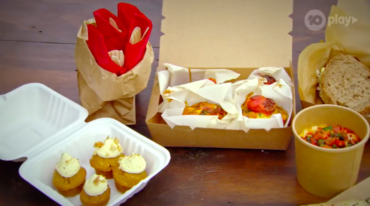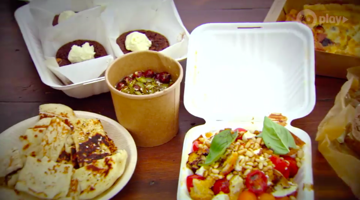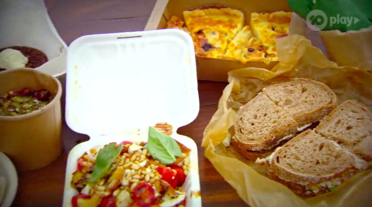 Our teams will be serving 100 people each, to be served in 25 baskets. Each one must include sandwiches, salad, another savoury item, a dip with things to dunk in, and a sweet treat for four people. They’ll have 3 hours before serving.