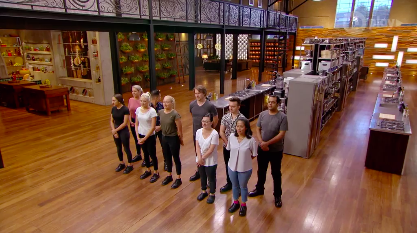 The contestants come into the kitchen to find it set up differently than usual.
