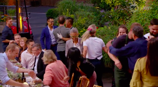 She comes back into the kitchen and hugs Gary before crying on the bench. Everyone’s very emotional, and Tati begins to cry a bit. Everyone serves the last of the food, leaving Gaz alone in the kitchen.