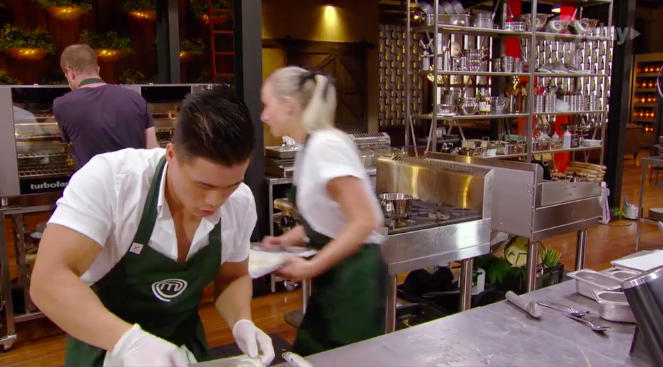 That’s true, but so far through MasterChef Aus, pressure test and elimination have been practically interchangeable, as far as I’m aware, and the pressure test/elimination/everyone in black is tomorrow’s episode, still part of best of the best week. Ah well, we’ll find out tonight what’s going on 🙂