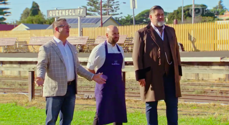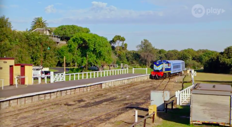 The contestants are in Queenscliff, and the judges are waiting for them by a train line.