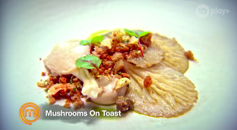 Gaz says it’s great that it looks pretty, and the crumb stands out nicely. The puree is delicious, and the pickled mushroom is great.
