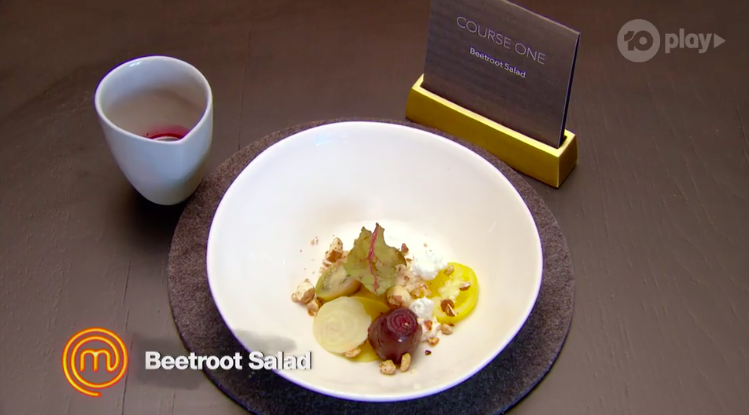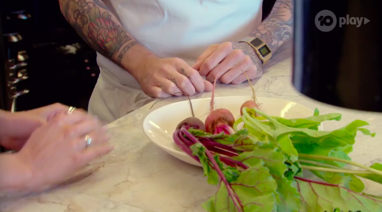 Nicole heads into the kitchen with Matt Sartori first to get to her ingredient – beetroot.