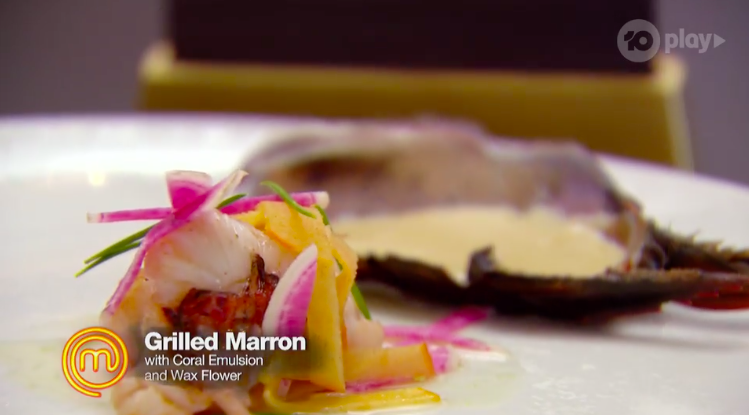 It’s time for Simon to start serving. He scooped the Marron meat out of the shell because of time, and decided to put it back in the shells once cooked, however it isn’t fitting in the shell, so he has to chuck the shells and put the meat out as is. Looks kinda gross, to be honest.