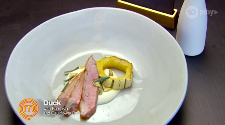They’ll be making five course degustation. Each contestant will be responsible for one of the courses. The first is the appetisers, the second is a bit more substantial, third is main, fourth is a transition one so it can be sweet, can be savoury, or cheese, whatever, before fifth course, dessert.