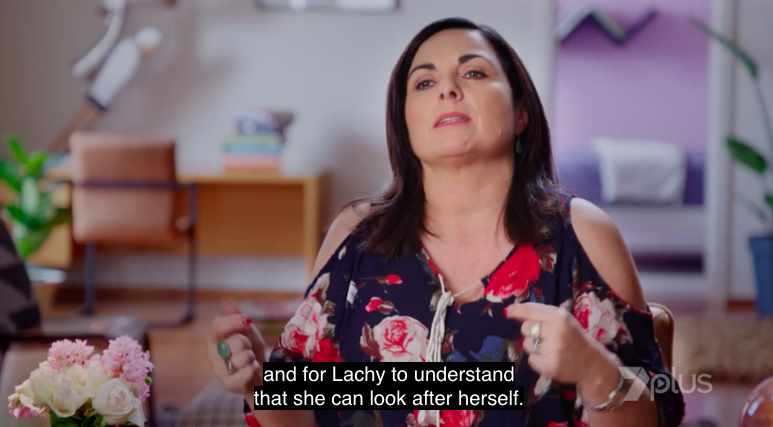 There’s a quick video of when Lachlan’s like to her, “Stop talking to men,” because she’s “naive”.