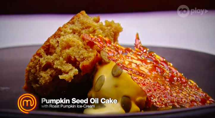 Pumpkin Seed Oil Cake with Roasted Pumpkin Ice-Cream