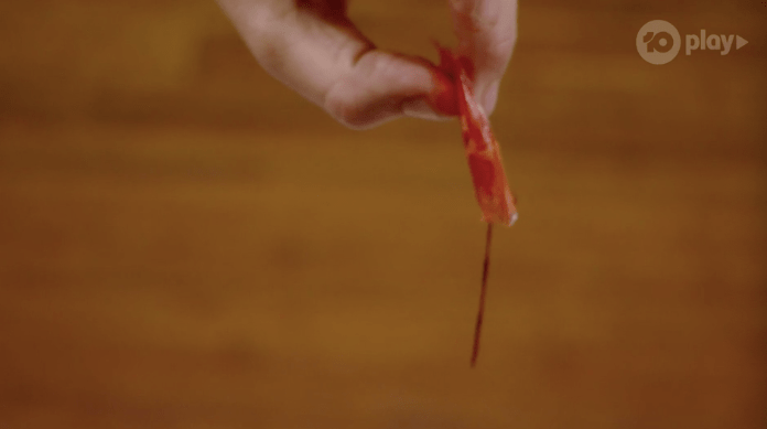 They crack the prawns and Jock lets out a demonic, “Yeeeeaaaah!” They’re perfectly cooked.