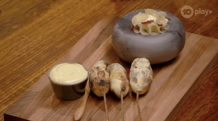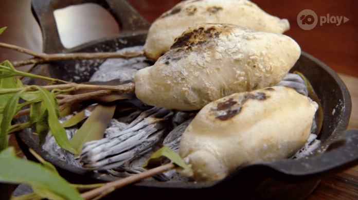 It’s time again for them to try the foods. The damper is being cooked as they talk about the foods. If you’re interested in the salad and the cones, etc, then check out the episode, but otherwise, don’t bother.