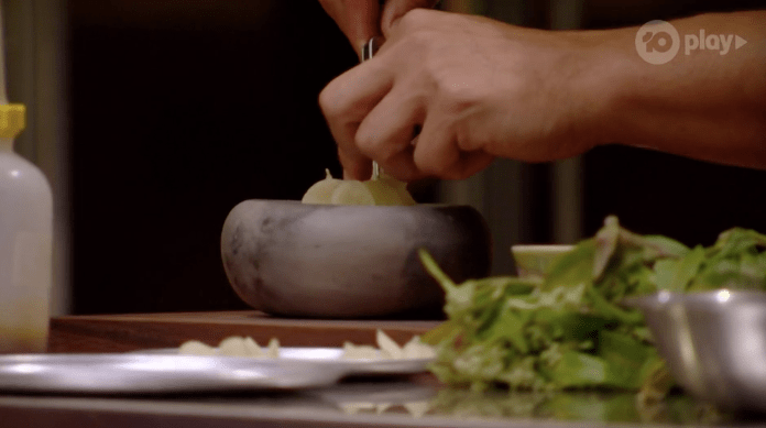 The judges wait for the group to enter, with Jock ready to go in his chef whites. It’s a Jock challenge, which is all well and good, except that Laura used to work at his restaurant, and while he said there won’t be any favouritism…