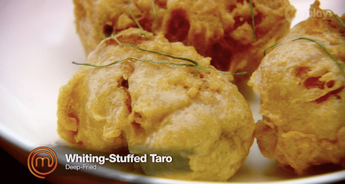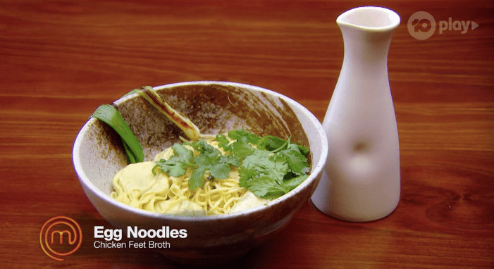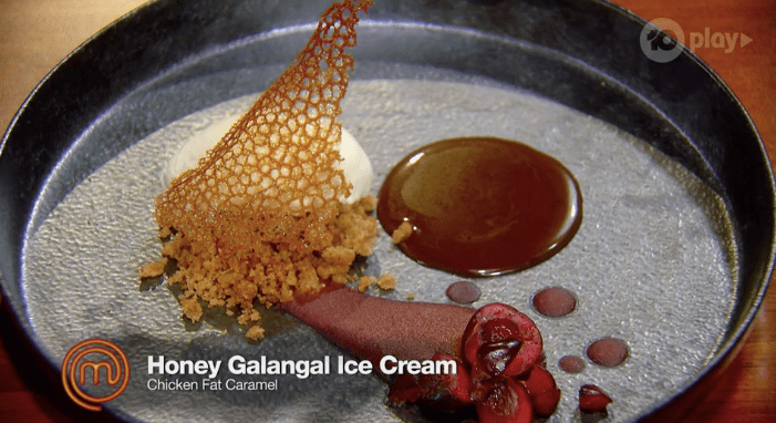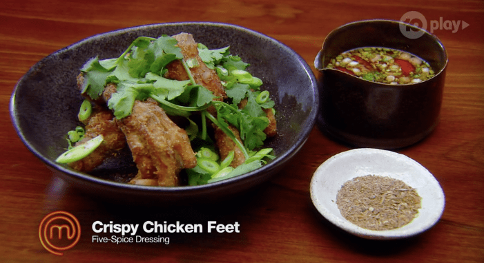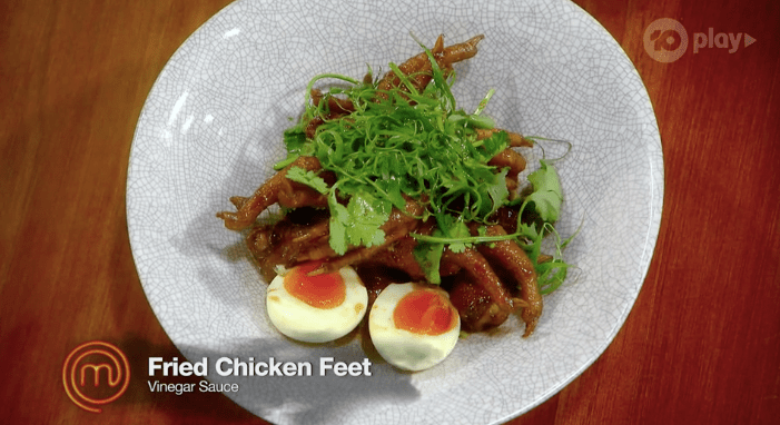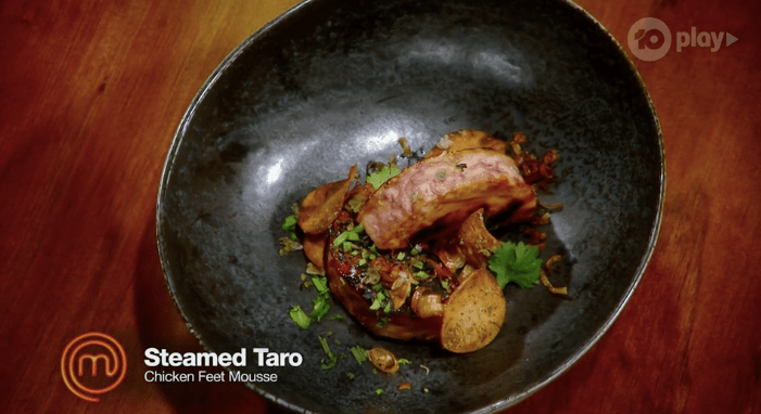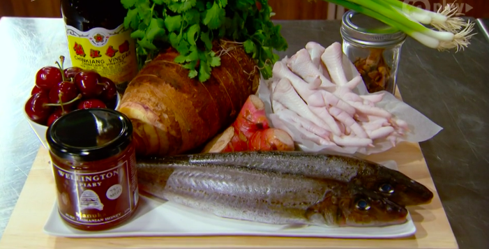 The ingredients she chose are (and please bare with me, I don’t know what most of these are) cherries, Manuka honey, black vinegar, Chinese five spice, chicken feet, spring onion, coriander, taro, King George whiting, and galangal.