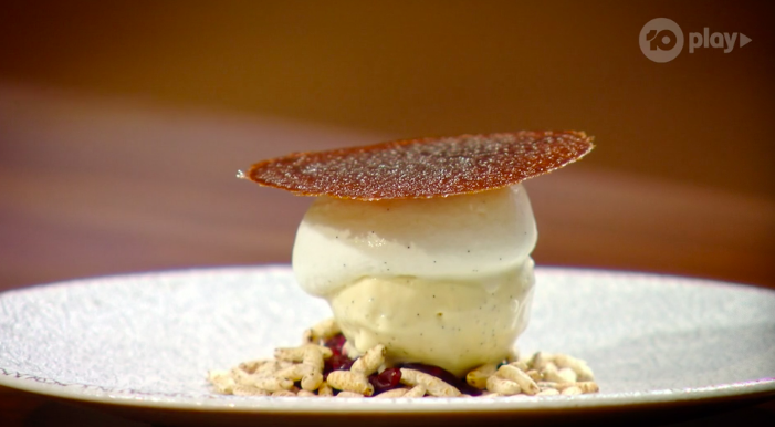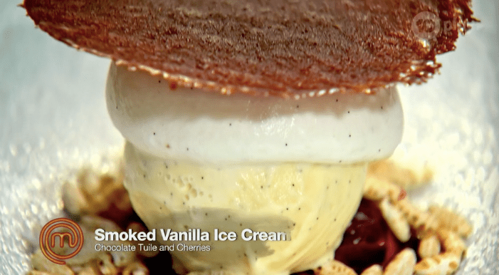 It’s Jess with a Smoked Vanilla Ice Cream and a Chocolate Tule and Cherries.
