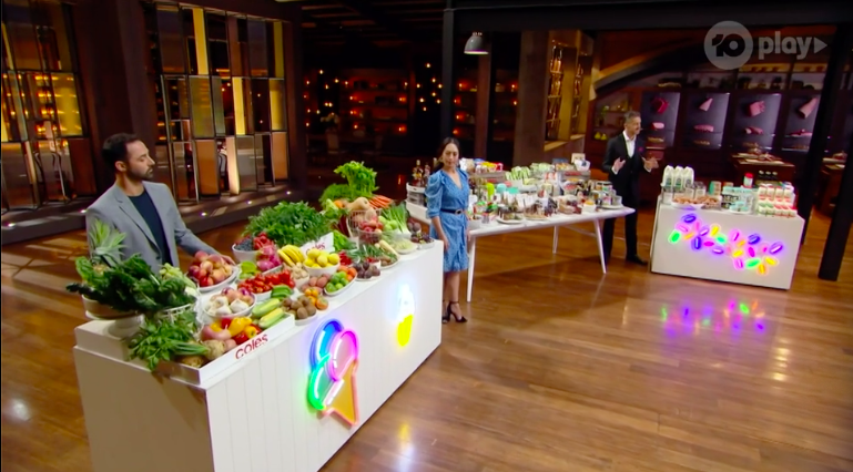 The judges stand in front of five hidden dishes. The judges have chosen five unusual flavour pairings.