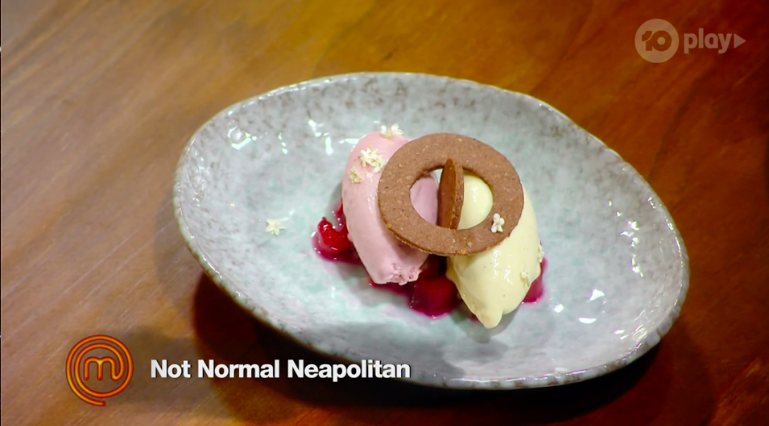 Next is Poh with wasabi vanilla and strawberry creme fraiche, her ‘Not Normal Neapolitan’. Jock described the wasabi as jarring.