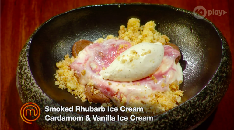 Next up – Khanh. He made Smoked Rhubarb Ice Cream and Cardamom and Vanilla Ice Cream.