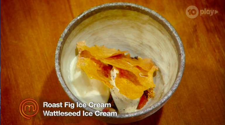 Laura with Roast Fig Ice Cream and Wattleseed Ice Cream.