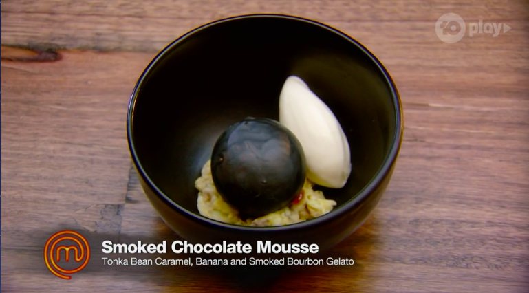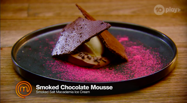 First is Reece with Smoked Chocolate Mousse and Smoked Salt Macadamia Ice Cream. Everyone only has good things to say about his dish.