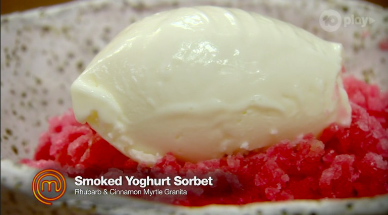 Next up is Laura with Smoked Yoghurt Sorbet and Rhubarb and Cinnamon Myrtle Granita.