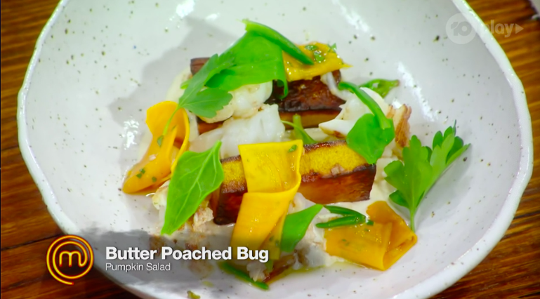 Third is Emelia with Butter Poached Bug with Pumpkin Salad.