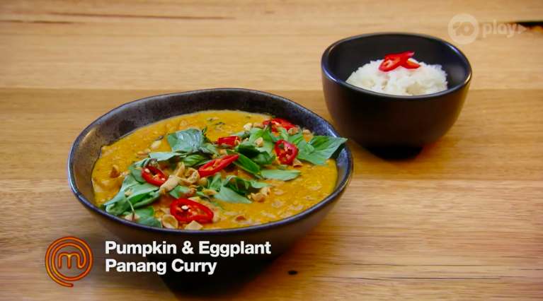 Next is Reece with a Pumpkin and Eggplant Panang Curry.