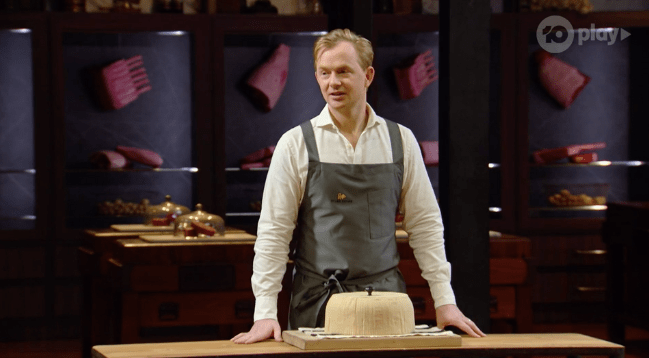 Mel introduces their guest chef, Phil Wood. He walks in with a cloche and talks to the judges about what he likes in a dish – done by hand and technical.