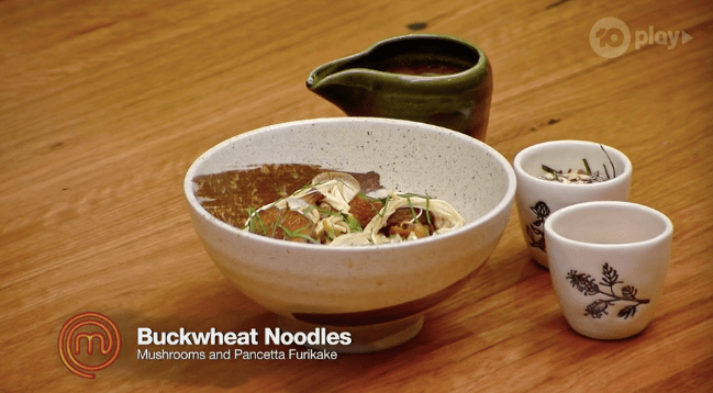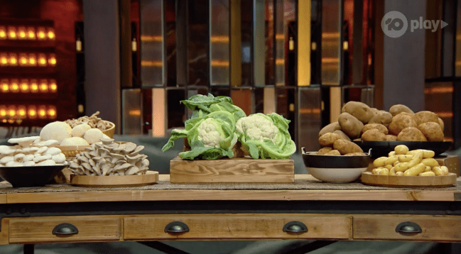 Jock says that Phil has shown them what he can use with mushroom, potato and cauliflower, now they have to show him what they can do. The judges unveil a table of the key ingredients from Phil’s dish.
