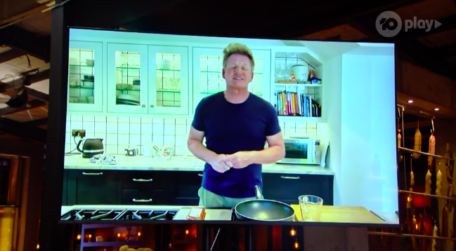 Tonight is a Mystery Box challenge. The begnining teases the return of a renowned chef – Gordon Ramsey.